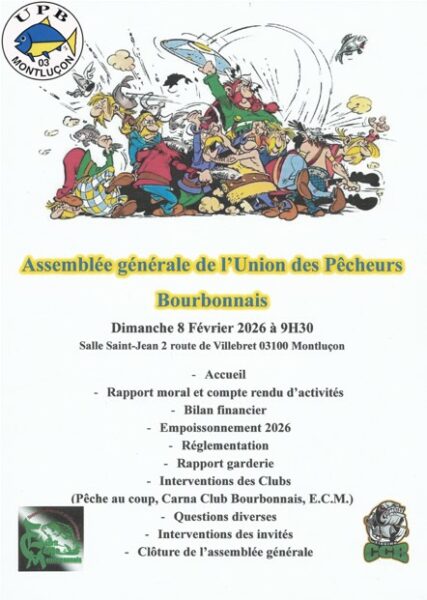 AAPPMA de MONTLUCON – Assemblée Générale le dimanche 08 février 2026