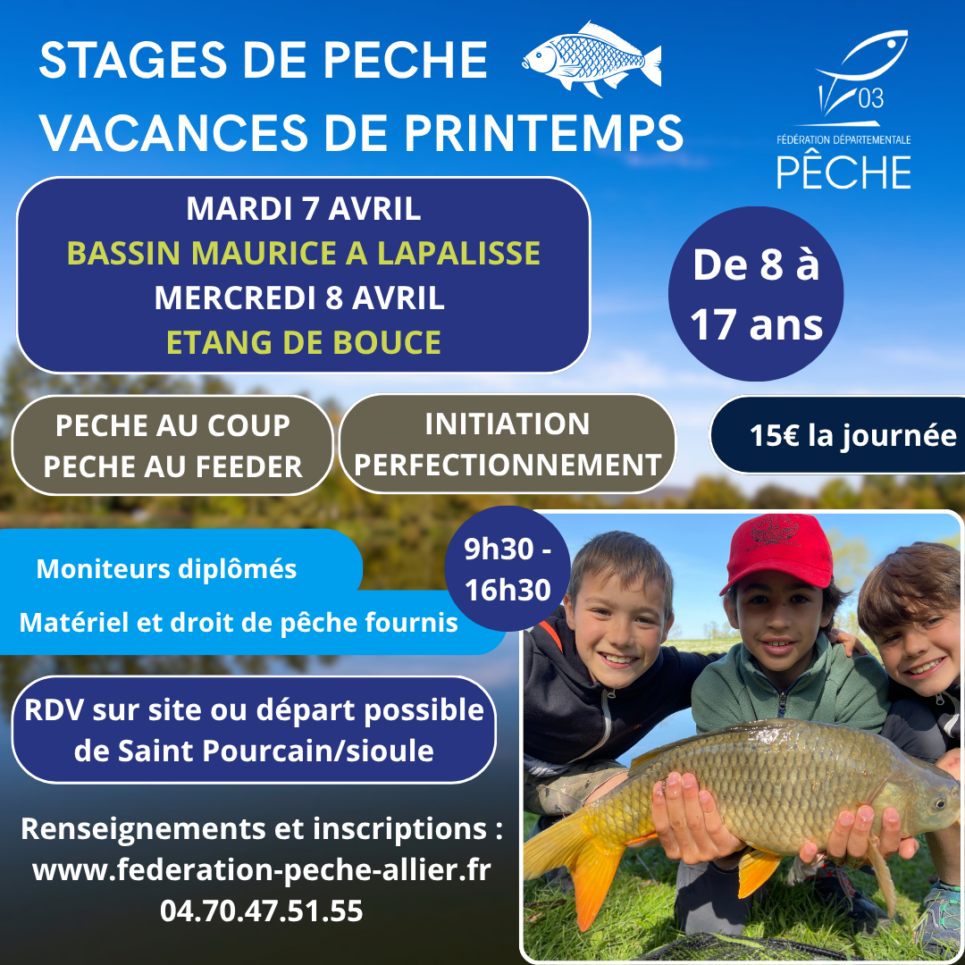 - Via la boutique de la Fédération https://www.federation-peche-allier.fr/produit/stage-peche-jeunes-avril-allier/