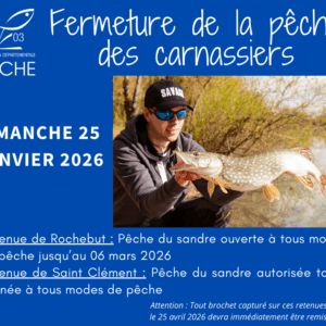 Brocante spéciale pêche à Yzeure organisée par l’AAPPMA de Moulins Avis aux passionnés de pêche : venez chiner et partager votre passion dans une ambiance conviviale Date : Dimanche 15 février 2026 de 8h00 à 17h00 Horaire d’arrivée des exposants : 6h30 Lieu : Espace Henri-Bérenger, Yzatis – Boulevard Jean Moulin – 03400 Yzeure Entrée...