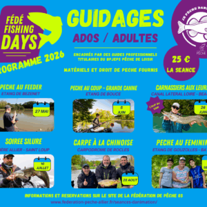 La Fédération de Pêche de l’Allier organise des stages de pêche à destination des jeunes à partir de 8 ans, accessibles aux débutants comme aux pratiquants confirmés. Encadrés par des animateurs qualifiés, les participants pourront découvrir ou se perfectionner aux différentes techniques de pêche des cyprinidés : pêche au coup grande canne feeder Ces journées...