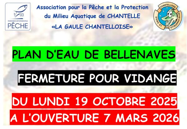 Fermeture du plan d’eau de Bellenaves du 19 octobre 2025 au 07 mars 2026
