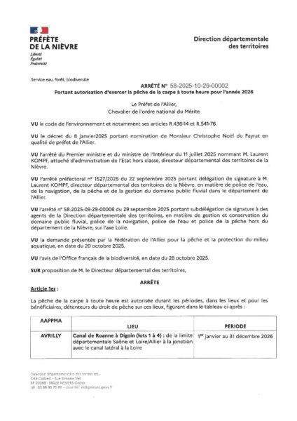 Pêche carpe nuit 2026 – canaux et Loire