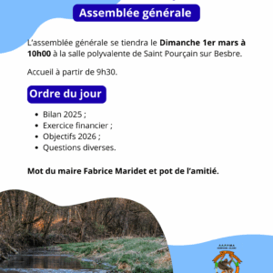 AAPPMA DOMPIERRE/JALIGNY – Assemblée Générale le dimanche 01 mars 2026