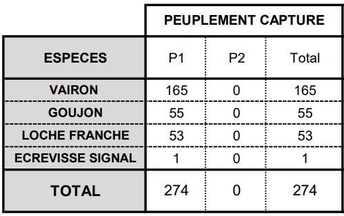 Le manque d’habitats piscicoles apparaissait ainsi comme un des facteurs limitant fortement la densité de truites fario sur ce tronçon en réduisant la capacité d’accueil du cours d’eau pour cette espèce. Les résultats de la pêche électrique d’inventaire réalisée avant travaux ont confirmé ce constat.